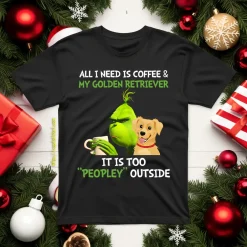 All I Need Is Coffee And My Golden Retriever It Is Too Peopley Outside Grinch Shirt