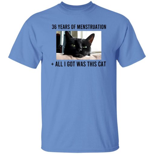 In essence, the “36 Years Of Menstruation All I Got Was This Cat” T-shirt transcends its status as mere apparel. It serves as a beacon of empowerment, resilience, and camaraderie among women. So, the next time you see someone sporting this tee, remember the depth of its message and the solidarity it represents.