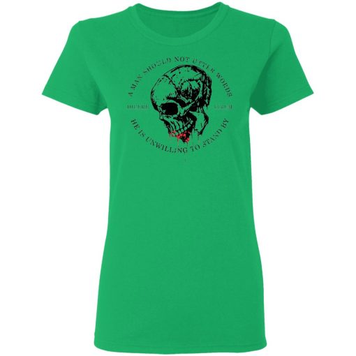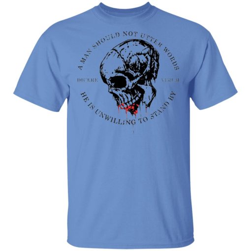 The “A Man Should Not Utter Words He Is Unwilling To Stand By Dicere Verum” T-shirt embodies the principle of honesty and integrity. It serves as a reminder that one should speak only what they’re prepared to stand by, reflecting the importance of sincerity and accountability in communication.