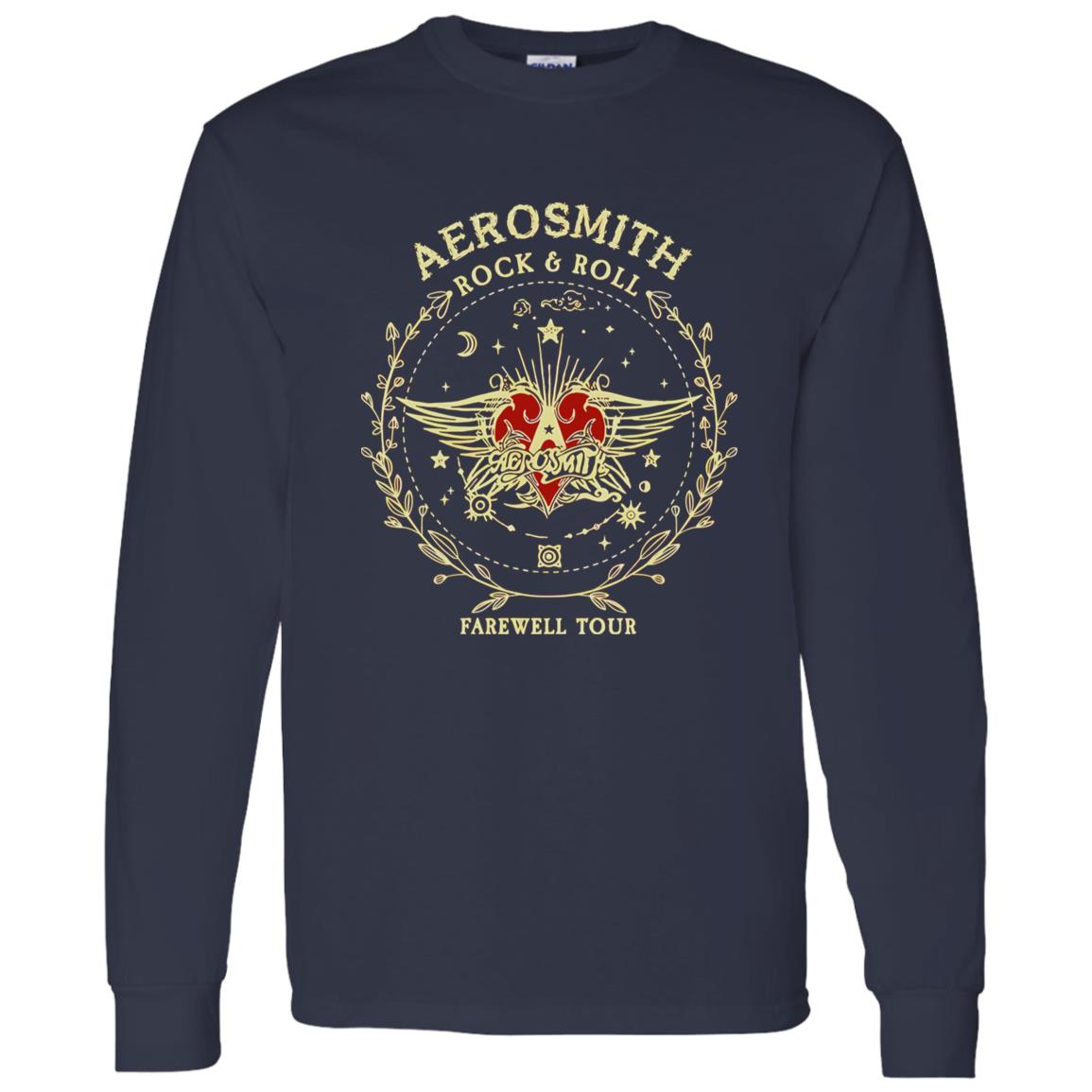 Some shirts stay in the drawer until the right occasion shows up. Others immediately set the tone for the rest of the outfit. The Aerosmith Farewell Tour Vintage Rock And Roll Heart Wings Badge Shirt belongs to the second group because the artwork already carries enough energy to lead the look. A winged heart badge, vintage rock and roll attitude, and farewell-tour framing give it the kind of visual authority that does not need heavy styling to feel complete.