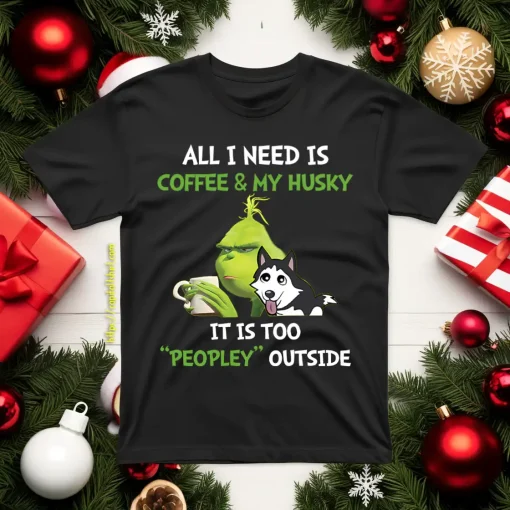 All I Need Is Coffee And My Husky It Is Too Peopley Outside Grinch Shirt