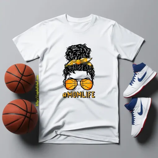 Basketball Mom Shirt, Mom Life Messy Bun Girl With Basketball Glasses Shirt