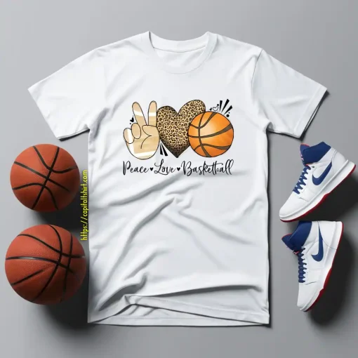 Basketball Shirt, Peace Love Basketball Leopard Shirt