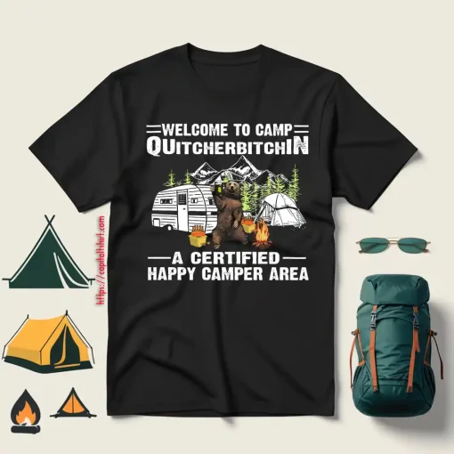 Bear Welcome To Camp Quitcherbitchin A Certified Happy Camper Area For Camp Shirt