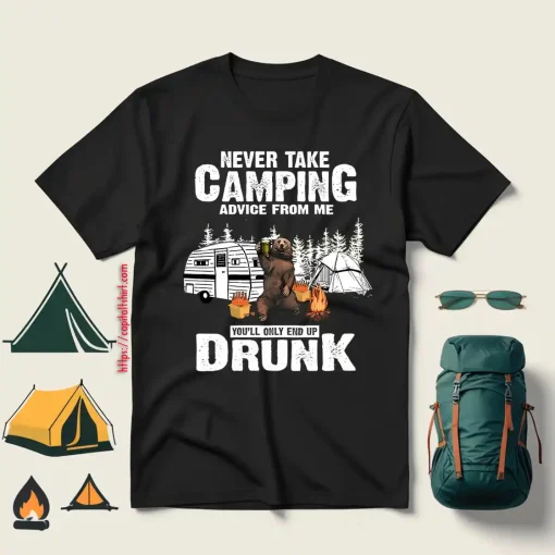 Bear With Beer Never Take Camping Advice From Me You’ll Only End Up Drunk Shirt