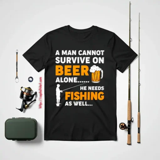 Beer Fishing Lover Shirt, A Man Cannot Survive On Beer Alone He Needs Fishing Shirt