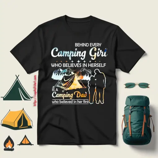 Behind Every Camping Girl Who Believes In Herself Is A Camping Dad Who Believed Shirt
