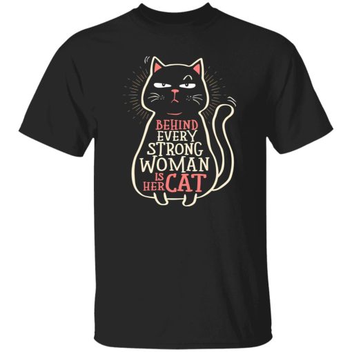 Behind Every Strong Woman is Her Cat – Cat Lover T-Shirts, Long Sleeve, Hoodies