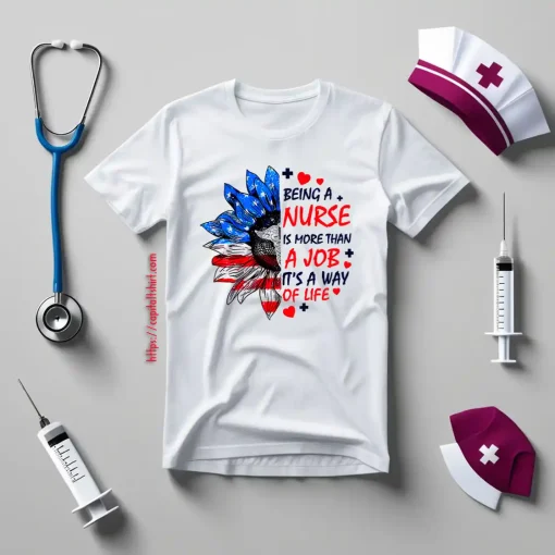 Being A Nurse is More Than A Job It’s A Way of Life American Flag Sunflower Shirt