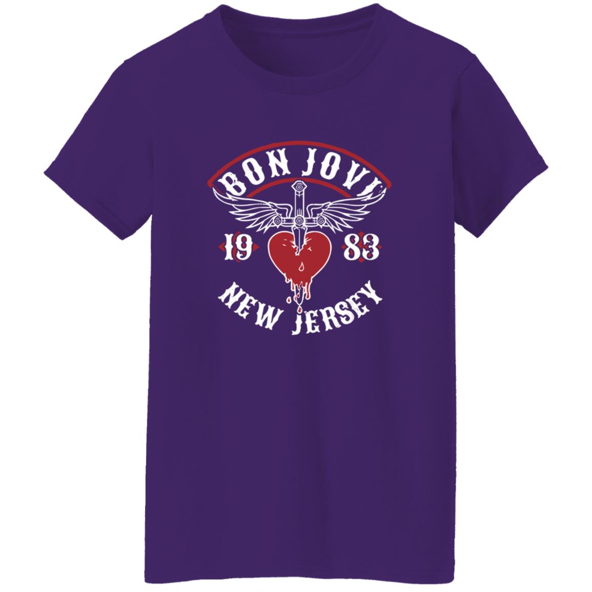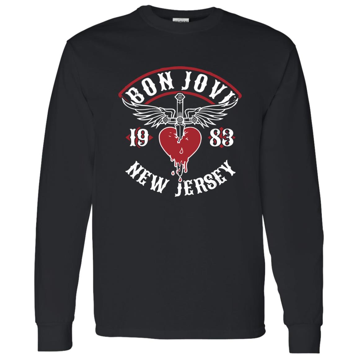 Before it became a global anthem machine, there was a rawer version of Bon Jovi—New Jersey roots, club circuits, and a sound still sharpening its edge. The Bon Jovi New Jersey 1983 Heart Dagger Vintage Graphic Shirt doesn’t just recall that moment. It translates it into a visual code that still carries weight decades later.