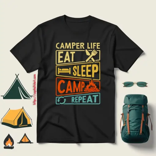 Camper Life Eat Sleep Camp Repeat Shirt