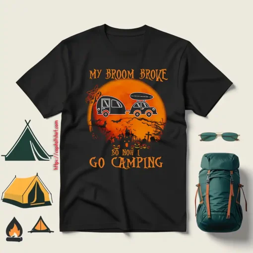 Camping Car My Broom Broke So Now I Go Camping for Halloween Shirt