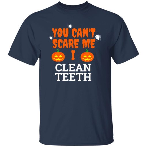Promotion of Dental Health The message “Can’t scare me i clean teeth” underscores the importance of dental hygiene and preventive care. It communicates the idea that maintaining oral health is not only essential but also nothing to fear. This serves as a gentle reminder to prioritize dental check-ups and hygiene practices, even amidst the spooky atmosphere of Halloween.