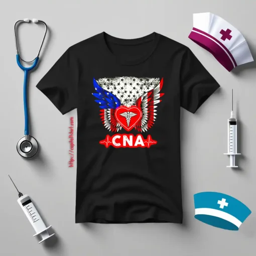 Certified Nursing Assistant Heart Angel Wings American Flag Shirt