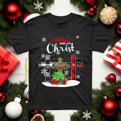 Christmas Begins With Christ Leopard Shirt