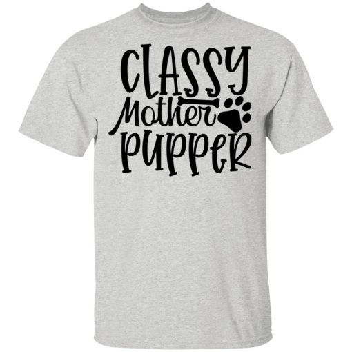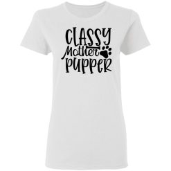 Moreover, the phrase “Classy Mother Pupper” reflects the idea of nurturing and companionship. It’s a reminder that dogs are not just pets; they’re cherished members of the family who bring joy and comfort to their moms’ lives.