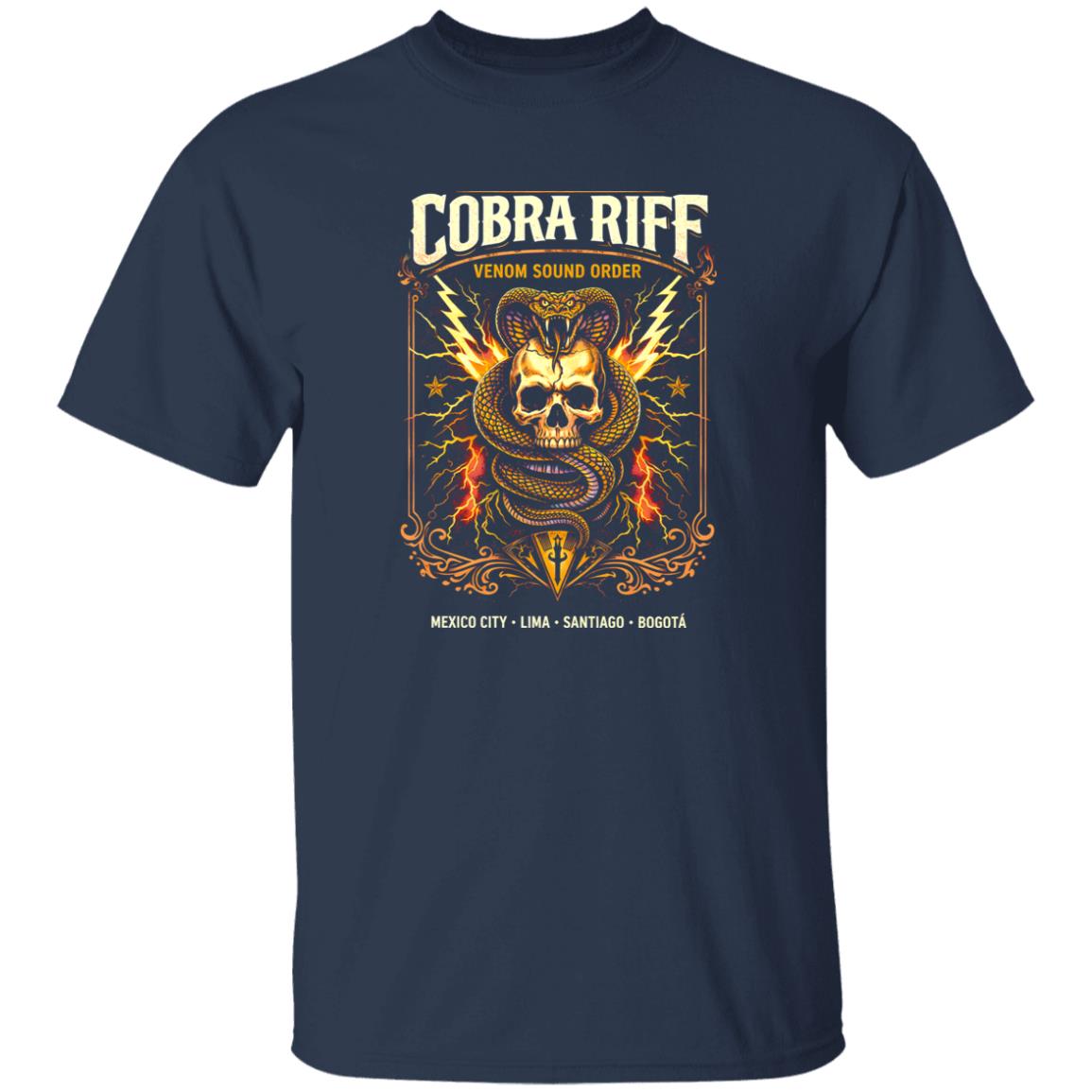 The cobra motif isn’t subtle—and that’s the point. Coiled tension, sharp linework, and a sense of movement give the print a dynamic quality that feels alive. It channels the same energy found in high-gain guitar riffs: aggressive, controlled, and designed to cut through noise.