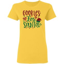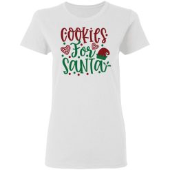 Furthermore, the phrase “Cookies For Santa” embodies the festive spirit and anticipation of Christmas. It conjures images of cozy gatherings, festive decorations, and the excitement of waiting for Santa’s arrival. The T-shirt becomes a representation of this joyful atmosphere, encouraging wearers to immerse themselves fully in the magic of the holiday season.