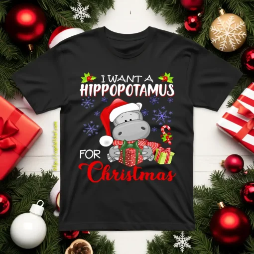 Cute Hippo Santa I Want A Hippopotamus For Christmas Design for Animal Lover Shirt