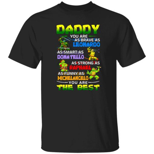 The “Daddy You Are As Brave As Leonardo As Smart As Donatello As Strong As Raphael” T Shirt is more than just apparel; it’s a celebration of fatherhood and the heroic qualities dads possess. Inspired by the Teenage Mutant Ninja Turtles, it honors dad’s bravery, intelligence, and strength, while also recognizing the influence of childhood heroes in our lives. Wear it proudly and let dad know he’s a hero in every way!