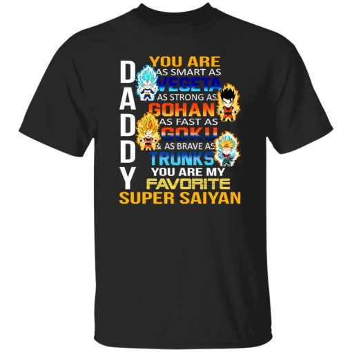 The phrase “Daddy You Are As Smart As Vegeta As Strong As Gohan” draws parallels between a dad and two popular characters from Dragon Ball Z: Vegeta and Gohan. It compliments the dad’s intelligence by likening it to Vegeta’s wit and acknowledges his strength by comparing it to Gohan’s power.