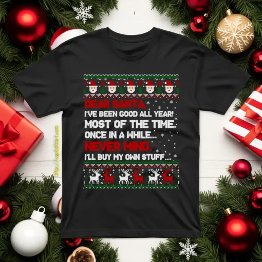Dear Santa I’ve Been Good All Year Most Of The Time Once In A While Never Mind Shirt