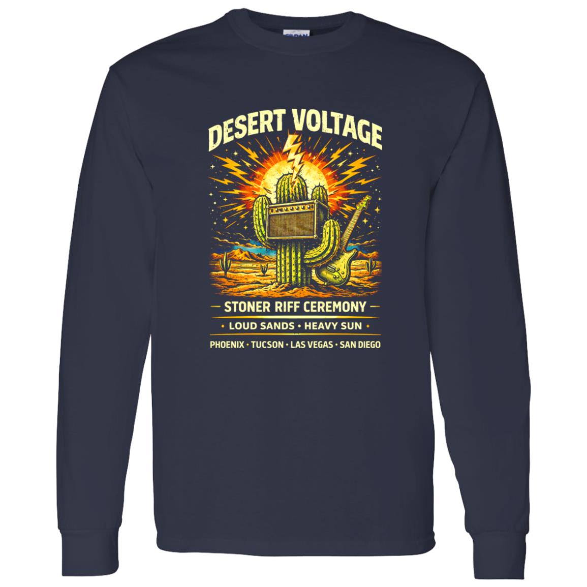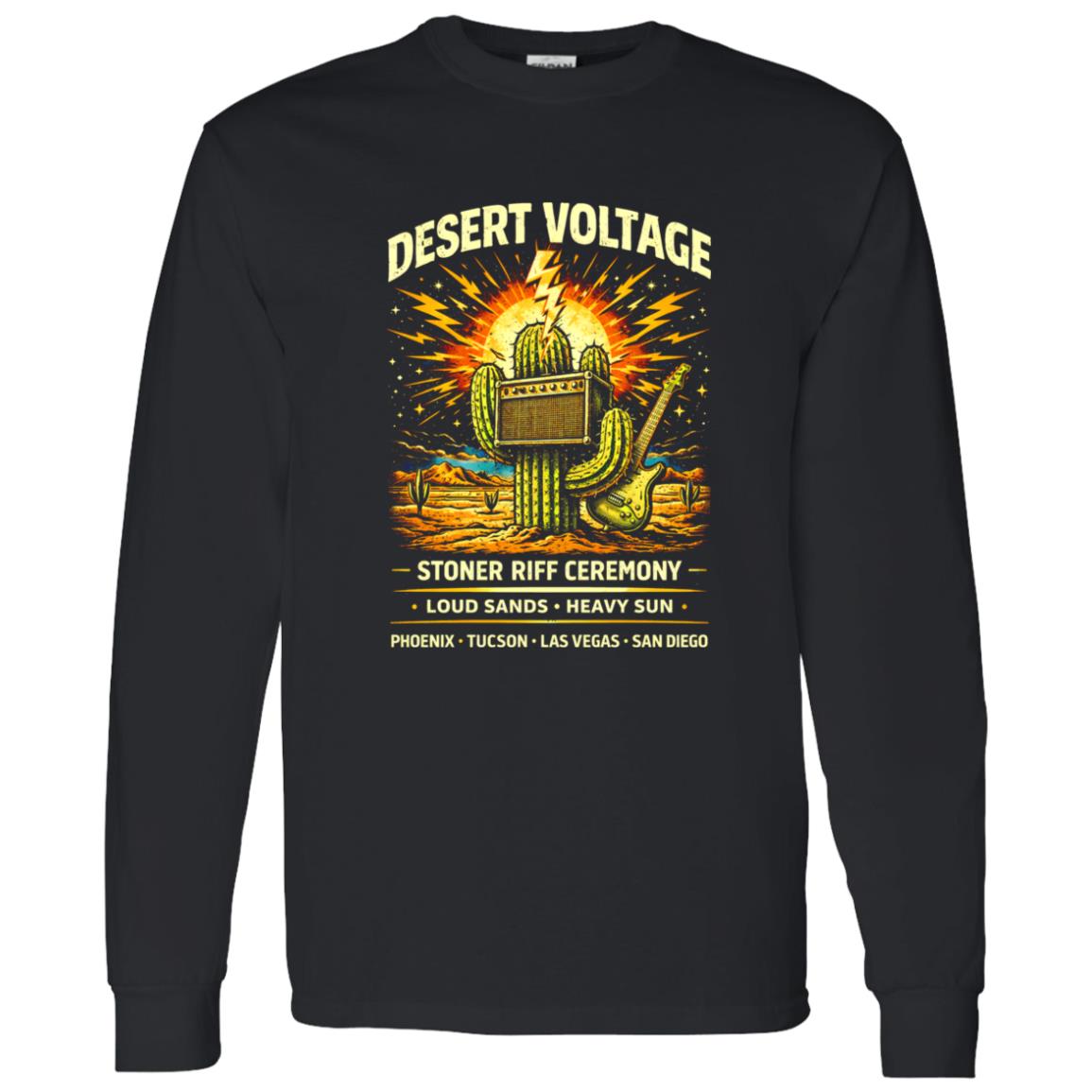 The Desert Voltage Stoner Rock Ritual Shirt belongs to that tradition. Its visual language draws directly from the imagery that has surrounded stoner rock for decades: electricity, desert symbolism, and the ritualistic aura of sound played at overwhelming volume.
