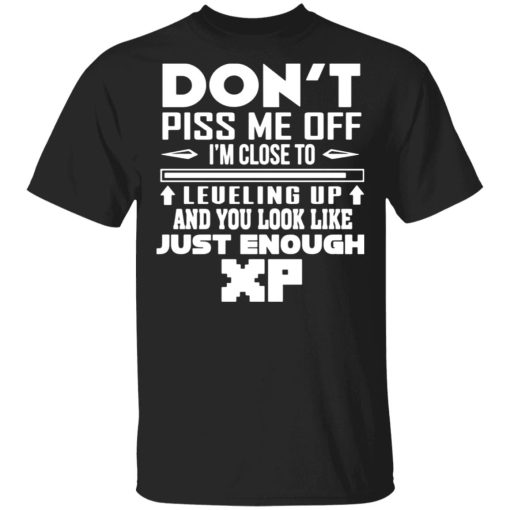 The “Don’t Piss Me Off I’m Close To Leveling Up And You Look Like Just Enough XP” T-shirt is more than just a witty statement—it’s a reflection of the wearer’s gaming prowess and attitude. This shirt serves as a humorous warning to others while showcasing the wearer’s passion for gaming and leveling up.