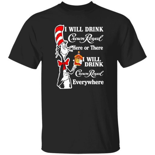 In conclusion, the “Dr Seuss I Will Drink Crown Royal Here Or There I Will Drink Crown Royal Everywhere” T-shirt is a playful and creative garment that celebrates the union of two beloved cultural icons—Dr. Seuss and Crown Royal. With its clever adaptation of a classic rhyme and its humorous expression of love for the whisky brand, this shirt is a fun and memorable addition to any wardrobe. Whether worn by fans of Dr. Seuss, Crown Royal enthusiasts, or anyone who appreciates clever wordplay, this T-shirt is sure to bring smiles and spark conversations wherever it goes.