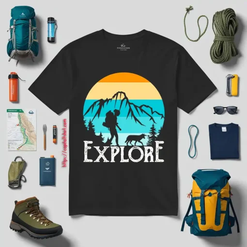 Explore Hiking Girl and Dog Mountain Digital Art for Hiking and Camping Lover Shirt