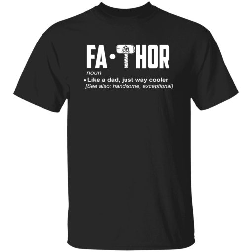 Honoring Fatherhood: The message on the “Fa-Thor Like A Dad Just Way Cooler” T-Shirt is a playful tribute to the importance of fatherhood. It acknowledges the role of dads as heroes in the lives of their children, embodying strength, courage, and wisdom.