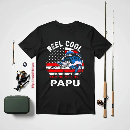 Fathers Day Us Flag Vintage Reel Cool Papu Fishing Shirt