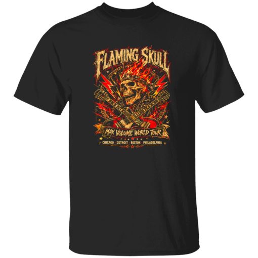 Flaming Skull Biker Arena Rock Max Volume World Tour Shirt