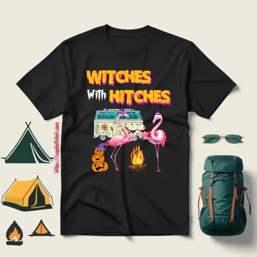 Flamingo Camping Witches With Hitches for Halloween Shirt