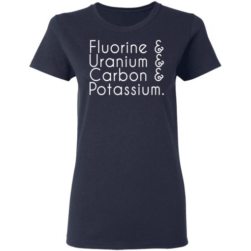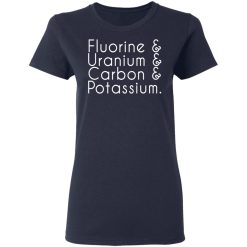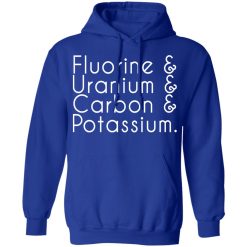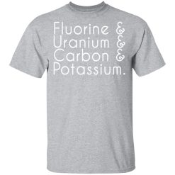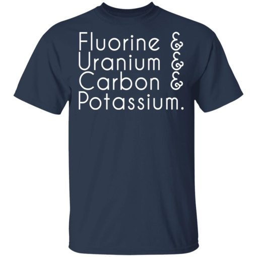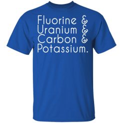 In conclusion, the “Fluorine & Uranium & Carbon & Potassium” T-shirt blends science and humor to create a witty and stylish garment. Its significance lies in its ability to evoke laughter, celebrate intelligence, and foster connections among like-minded individuals. Whether worn for its comedic value or as a badge of intellectual pride, this shirt is sure to leave a lasting impression.