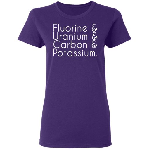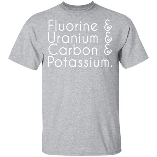 Ultimately, the “Fluorine & Uranium & Carbon & Potassium” T-shirt represents more than just a clever arrangement of chemical symbols. It reflects the wearer’s personality, humor, and intellectual curiosity, making it a unique and meaningful addition to their wardrobe.
