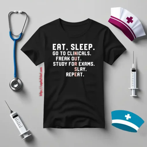 Funny Nursing Student Nurse Shirt, Eat Sleep Go To Clinicals Freak Out Shirt