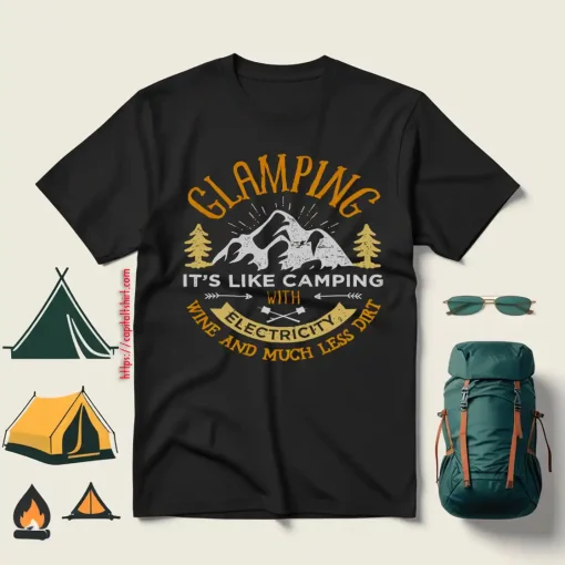 Glamping It’s Like Camping with Electricity Wine and Much Less Dirt V2 Shirt