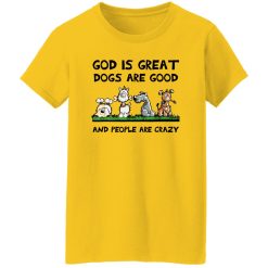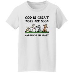 In conclusion, the “God Is Great Dogs Are Good And People Are Crazy” T-shirt embodies a harmonious blend of spirituality, love for dogs, and humor. It serves as a statement piece that not only expresses the wearer’s beliefs but also fosters connection and conversation among individuals who share similar values and outlooks on life.