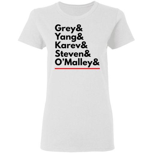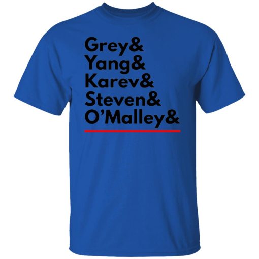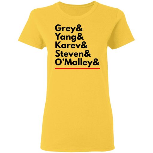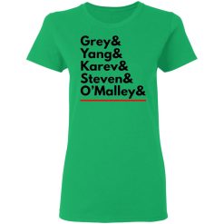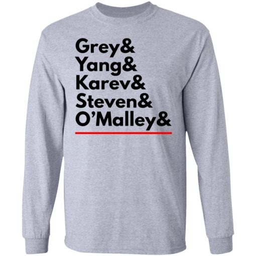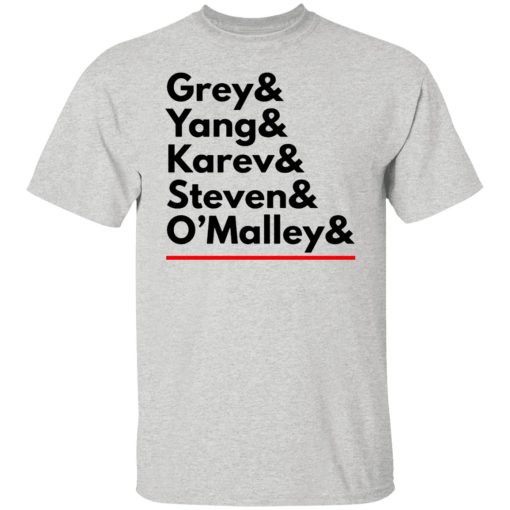 The combination of “Grey Yang Karev” on a shirt symbolizes the deep bonds of friendship and camaraderie shared between Meredith, Cristina, and Alex. Throughout the series, these characters supported each other through triumphs and tribulations, creating a sense of family within the chaotic environment of Grey Sloan Memorial Hospital. The shirt encapsulates the strength of their friendship and the solidarity they exhibited, resonating with fans who value loyalty and companionship.