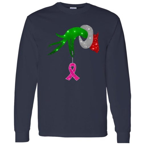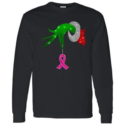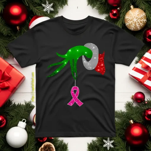 Grinch Hand Holding Breast Cancer Awareness Christmas Shirt