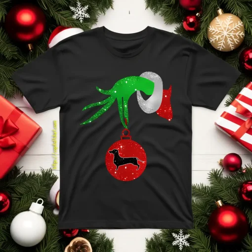 Grinch Hand Holding Dachshund Dog Christmas Shirt