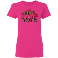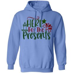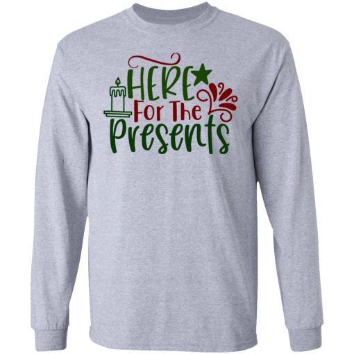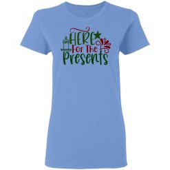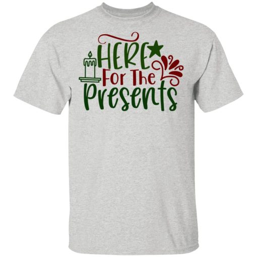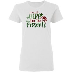 1. Anticipation of Gifts: The phrase “Here For The Presents” expresses the wearer’s excitement and anticipation for receiving gifts during the holidays, capturing the joyous anticipation of unwrapping surprises.