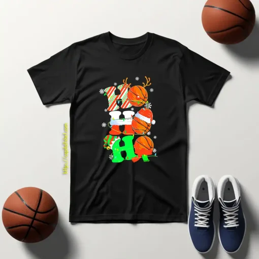 Ho Ho Ho Basketball With Santa Hat And Reindeer Horns for Christmas Shirt