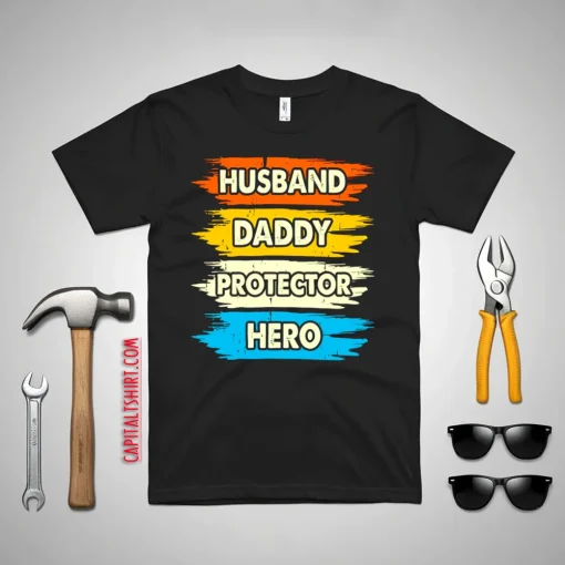 Husband Daddy Protector Hero Vintage Father’s Day Shirt