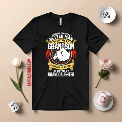 | Product | I Asked God To Make Me A Better Man He Sent Me My Grandson I Asked God For An Angel He Sent Me My Granddaughter T-Shirts, Long Sleeve, Hoodies |