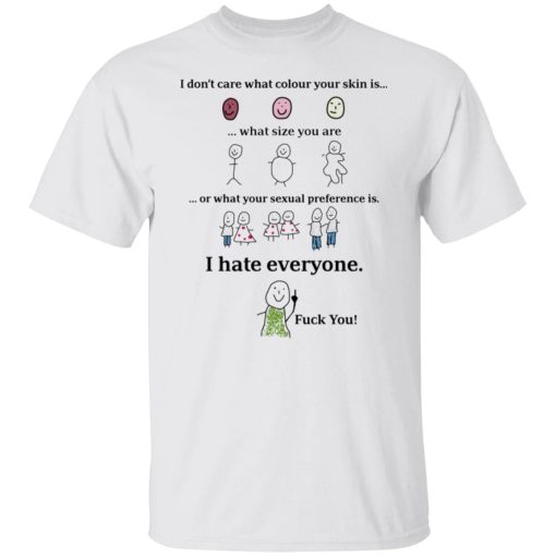 I Don’t Care What Colour Your Skin Is I Hate Everyone Fuck You T Shirts, Hoodies, Long Sleeve