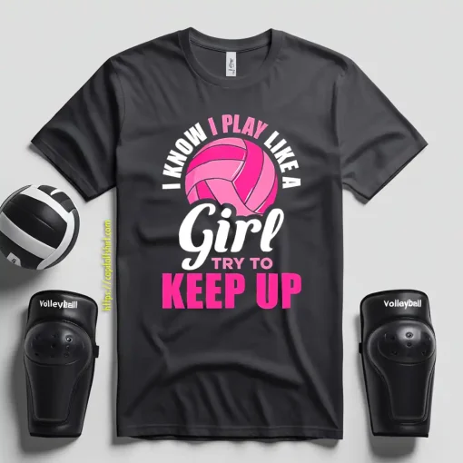I Know I Play Like A Girl Try To Keep Up For Volleyball Player Shirt