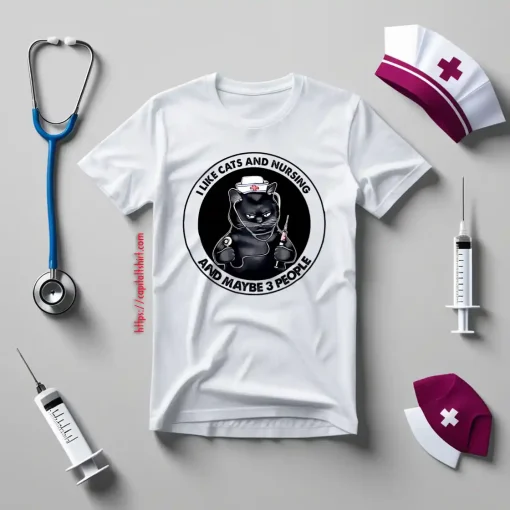 I Like Cats and Nursing And Maybe 3 People Funny Black Cat Circle Design Shirt