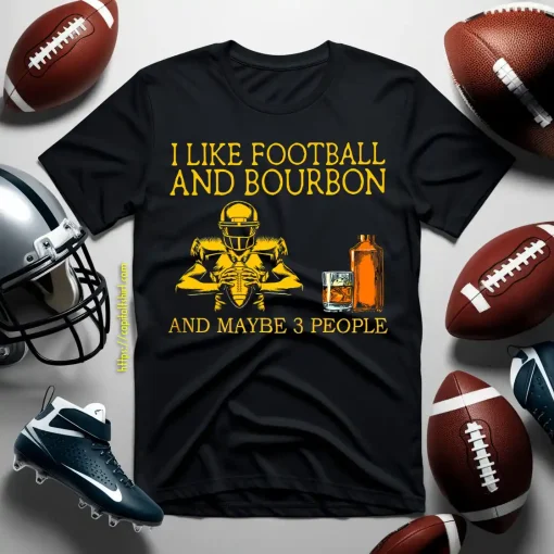 I Like Football And Bourbon And Maybe 3 People Black Version Shirt